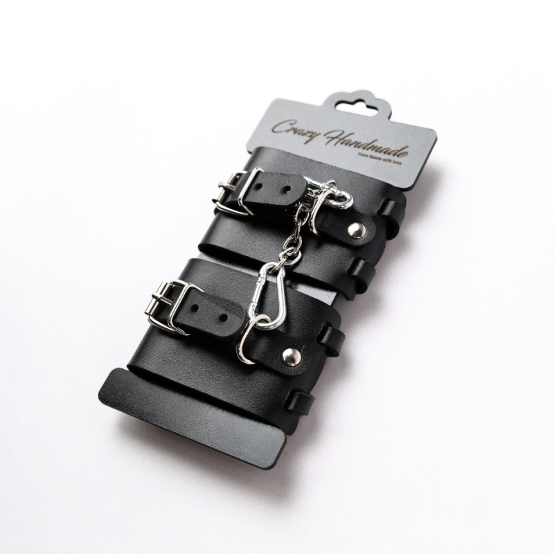 В комплект также входит соединительный кожаный элемент с двумя карабинами, с помощью которого можно зафиксировать между собой руки.